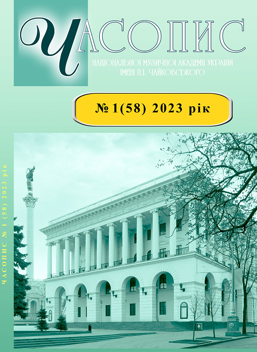 Ma, Lin, 2021. Synerhiinist vplyvu konstruktiv emotsiinoho intelektu pianista na yoho indyvidualnyi vykonavskyi styl [The synergy of influence of the constructs of the pianist's emotional intelligence on his individual performance style]. Chasopys Natsionalnoi muzychnoi akademii Ukrainy imeni P. I. Chaikovskoho, 2(51), pp.91–105.